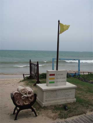 黄色い旗が立っている時は、『十分注意して泳ぎましょう』