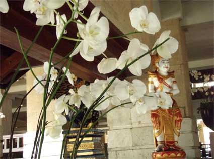 こちらはエントランスで神像と共にゲストを迎える胡蝶蘭です。