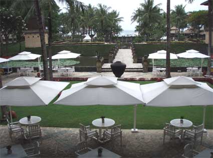 ホテルのロビー回廊から、海へ向って写したもの。