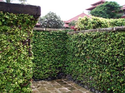 メインプールからロビーへ伸びる橋を渡ろうとすると、この、草に覆われた壁に阻まれます。