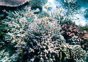 海の中には、思っていた通りの 元気な珊瑚がいっぱい。 夢中になって色とりどりの珊瑚たちを カメラに収めていく。 浅瀬で休憩中の海亀が私たちの出現に驚いて、 慌てて身を翻し、あっという間に 沖へと消えていった。 目の前でひらひらと踊る、 小さなトロピカル・フィッシュたちは、 レンズを向けた途端、 からかうようにフレームから遠ざかる。 海の生物には、やっぱりかなわない。 それでも楽しい海中散歩は、 いつだって時の経つのを忘れてしまう。 |