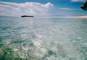 水から顔を出した瞬間、思わず目を瞑った。 太陽の光を照り返す海面が、眩しすぎたから。 すぐお隣の無人島、マタキン・クチルまでは まだ遠い。 けれど、もうすぐこの島は干潮を迎えてしまう。 泳いで辿り着くのはあきらめて、 あとでビーチを歩いてみよう。 何もない島の小さな楽しみ。 あちら側から見るリゾートは、 どんな姿をしているのだろう。 |