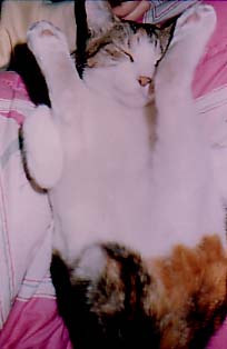 それはそれはかわいい猫でした。我が家に出入りしていた魚屋さんが拾ってきた三毛猫は、まだ手のひらにすっぽり収まるくらいちっちゃくて、目元のアイラインくっきりの美人猫。貰い手が見つかるまで、との約束は、あまりのかわいさから立ち消えになり、メチャは、我が家の仲間入りをしたのです。当時大人気だった「まことちゃん」の飼い猫から名前をつけました。 当時、我が家に居たのはペペと彼の妻妾であるアミとリコ。3匹とも、おっとりとした長毛種。既に成猫となった彼らはあまり物にじゃれることもなく、静かに余生を楽しんでいる、といった風情がありました。そんな中にあって、やんちゃなメチャは、まさしく私たちが久しぶりに触れ合う「猫らしい猫」だったのです。 空いた袋を見つけては頭から突っ込み、お尻だけを出して闇雲に走りまわる、といった、猫を飼っている家庭ならよく目にしていたであろう光景も、我が家にとっては珍しく、いつもいつも笑いを振り撒いてくれました。 思っていたより早くさかりが来ると、一日中、鳴きながら家中をうろついて、あまりの騒ぎに家族は困りはてました。じゃあ、明日にでも去勢しようか、という時です。見かねたペペが「しょうがねえな」という感じでメチャの背中に乗ったのです。 これには皆、大爆笑。 なぜなら、ペペはその時すでに「去勢済み」だったからです。機能はなくなっても、本能で覚えていたんですね。 冬になってこたつを出すと、必ず膝の上にメチャが乗ってきたことを思い出します。どういうわけか身体が異常に柔らかく、アクロバティックな格好で眠るメチャ。くすくす笑う私に気づくことなく、メチャはいつも幸せそうに眠っていました。 おそらくは子供の頃に充分な栄養を摂れなかったせいでしょう。メチャはあまり大きくなることなく、他の猫より病院へ行くことも多かったと思います。そして、たったの3年でこの世を去りました。 あまりにも愛されたから短かったのか。それとも短い命だからこそ、皆に愛されたのか。 ともあれ、家族だけでなく、お客様や私の友人からも、めいっぱいの愛を受け、メチャは旅立ちました。ペペの死から、半年後のことです。 最近、三毛猫が少なくなったと思いませんか? 日本猫の代表格でもある三毛猫、近い将来絶滅…なんてことないですよね。野良猫駆除なんてやってると、今にそんな日もくるかもしれないじゃないですか。 くじらにしろ何にしろ、獲るだけ獲っておいてさ、本当に絶滅の危機に瀕してからじゃないと、人間って気づかないんだよね。 ちなみに今住んでいる街は、キジトラ:3割、茶トラ:2割、白茶又は白黒斑:2割、黒又は白:2割、三毛猫:1割、といったところでしょうか。 元々雌しかいない三毛猫は数が少ないけれど、日本の街から三毛猫が消えてしまったら、なんだか日本じゃないみたいな気がしませんか? 血統書つきもよいけれど、種族保存のために、野良猫さんの住み良い環境を作ってあげましょう。 しかし最近はキジトラが多いな。うちにもいるけど。 |